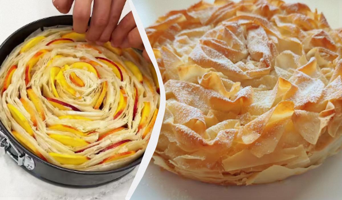 Hvis du tør å prøve å bake den en gang, vil du innse at det er den deiligste eplepai du noensinne har spist i livet ditt. Det som kjennetegner desserten er at den krever en tynn, luftig fyllodeig, som er laget av vineddik, vann, olivenolje og mel. Det er vanskelig å lage det hjemme, det krever spesialutstyr, som er tilgjengelig i produksjonsanlegg, så det er bedre å kjøpe ferdig deig i supermarkedet. Deretter trenger du bare å lage den deiligste eplepai – trinnvis oppskrift finner du nedenfor.